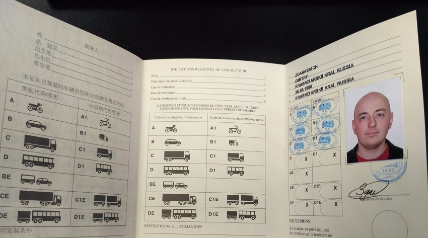 - водительских прав российского образца;
