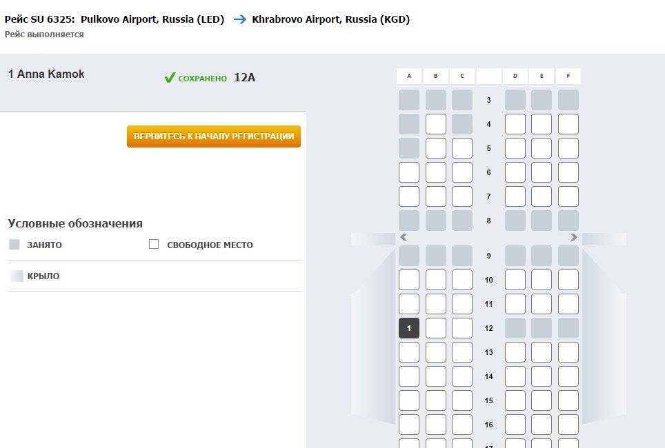 Внимание! Авиакомпании не гарантируют предоставления пассажиру того места, которое было выбрано при прохождении регистрации, по ряду причин: например, перелет может совершать другой борт, но такое происходит нечасто. Если по одной брони путешествуют несколько человек, аналогичные действия по вводу данных и выбору мест надо будет выполнить для каждого из них
