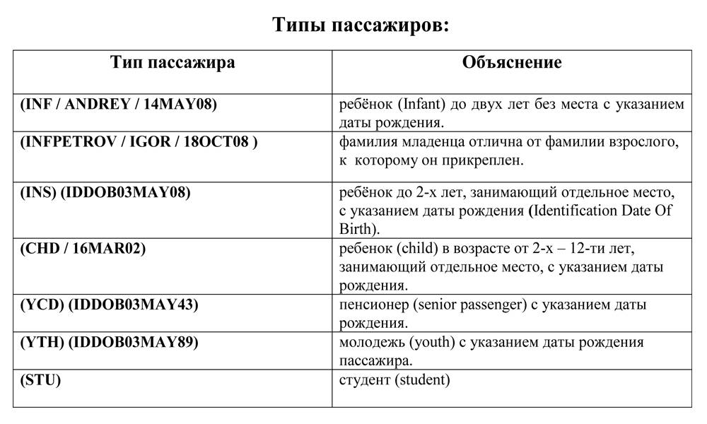 При планировании полета с грудным ребенком или при беременности более 6 месяцев, при наличии серьезных заболевании или если необходима помощь персонала на борту, при ограничениях в питании или если Вы планируете взять в полет питомца – крайне важно перед покупкой билета уведомить авиакомпанию и уточнить наличие места. В глобальных системах бронирования пассажиры делятся на типы
