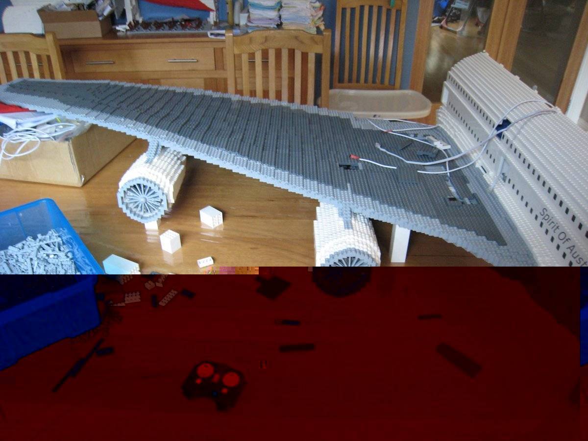 Помимо самого самолета, Райан создал массу обслуживающего персонала и технику, машину с трапом, дозаправочную команду и другие. Масштаб: минифигурка=человек, очень наглядно не правда ли?Самолет на выставке в Австралии. В длину он достигает 2.5 метра, а в ширину 1.8 метра.Райан решил сделать свой самолет «в разрезе», чтобы так же продемонстрировать внутренний мир воздушного судна: как располагаются кресла, где багажное отделение и на каком уровне находятся пилоты.На самолете установлено несколько шасси и 8 двигателей NXT. Помимо разработки самой конструкции, Райану пришлось создать программу управления двигателями. С помощью сенсорного управления можно убирать шасси, крутить реактивные двигатели, открывать грузовые двери, поднимать пневматические тормоза, включать посадочные огни, двигать хвостовой стабилизатор, а также перемещать закрылки.В носовой части расположены системы управления самолетом, место пилотов и кухня.В салоне кипит жизнь, стюардессы развозят еду, в первом классе отдыхают богачи.Райан решил включить в свой проект пасхалки на целых 4 фильма: «Пассажир 57», «Змеиный полёт», «Изгой», «Выжить».