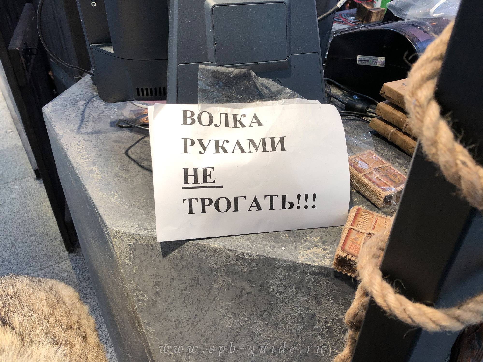 Табличка «Волка руками не трогать» у «Медвежьей лавки»