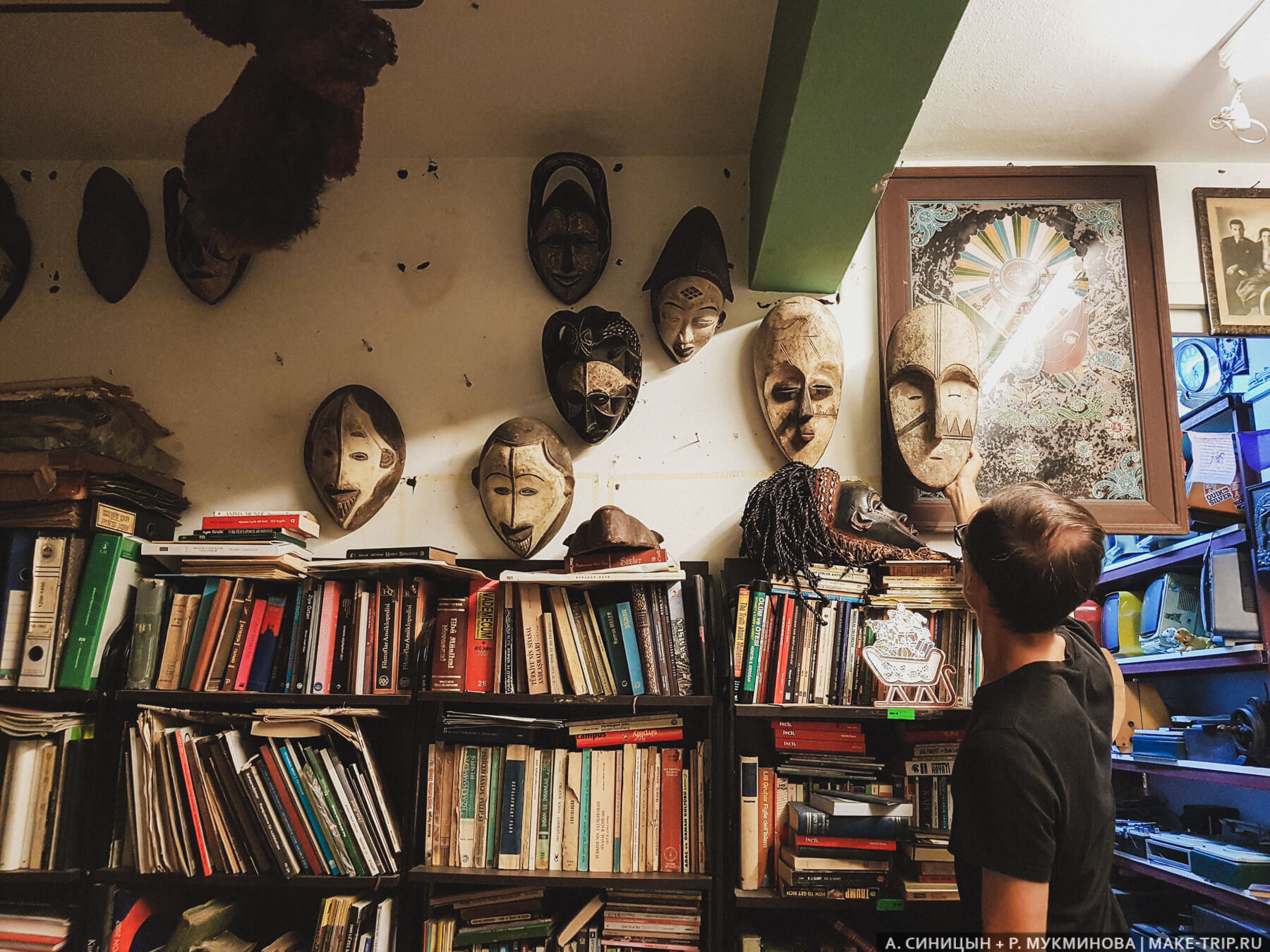 Выбираем маски в антикварной лавке в Стамбуле. Это наше увлечение — путешествуя по миру, мы коллекционируем маски из разных стран.