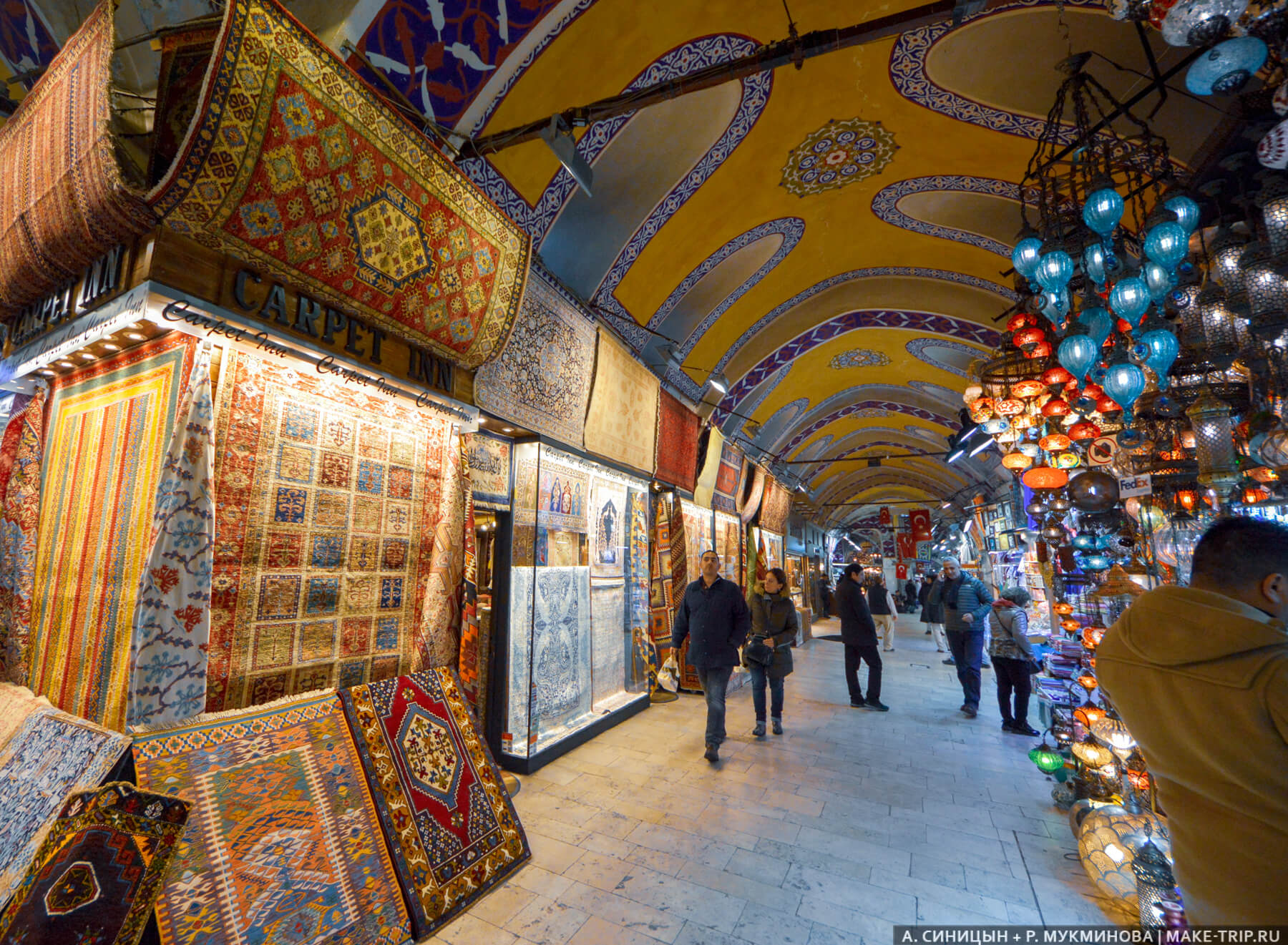 Ковры, светильники и потолки — главная красота в Гранд-базаре Стамбула. Потолок не продается, а вот ковры и светильники туристы активно скупают и увозят домой.