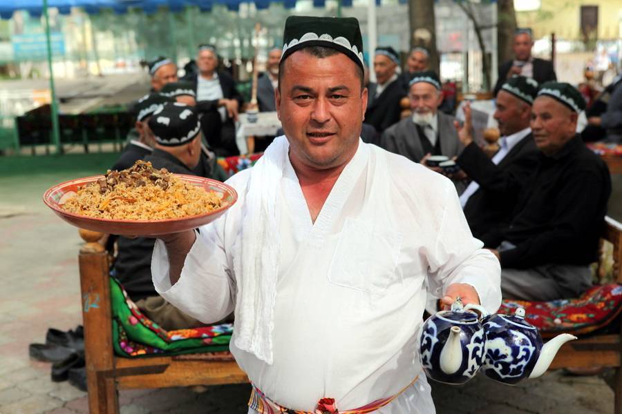 Национальное блюдо Узбекистана – плов. Это больше, чем еда, это объект поклонения и часть национальной культуры. «Ты родился – у тебя есть плов, ты женился – у тебя есть плов, ты умер – у тебя есть плов», – шутят местные. Рис, овощи, много мяса, неповторимые узбекские специи, а вкус пикантно разбавлен изюмом. Его подают как на семейные обеды, так и на торжества. Плов можно попробовать везде, но в каждом городе есть свой путь к этому блюду. В ресторане «Центр Плова» это блюдо подается с добавлением вареных яиц и кусочков конской колбасы.