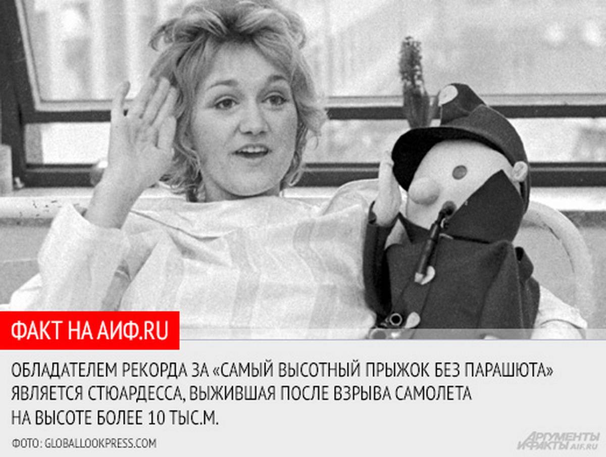 Вторая причина страха авиакатастрофы – осознание собственной беспомощности и неспособности хоть как-то повлиять на ход событий. Практически всегда это действительно так. Однако история воздухоплавания накопила небольшое количество исключений, при которых люди выживали, падая вместе с самолетом (или его обломками) с высоты нескольких километров без парашюта. Этих случаев настолько мало, что у многих из них есть собственные странички в Википедии.