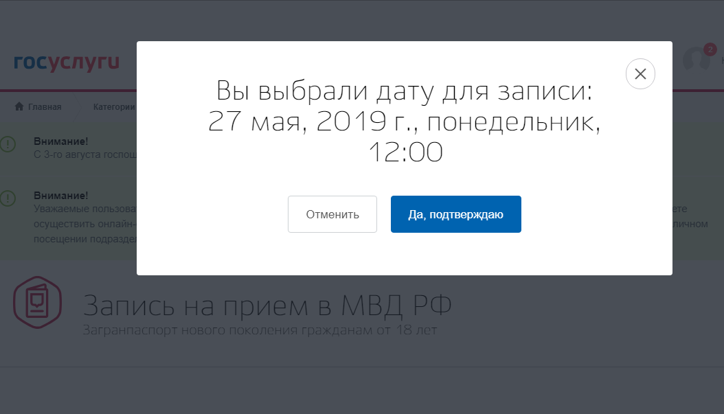 - ГУВМ МВД примет и рассмотрит заявку в указанный в описании срок. По итогам рассмотрения будет получено приглашение явиться в выбранный паспортный стол для осуществления услуги.