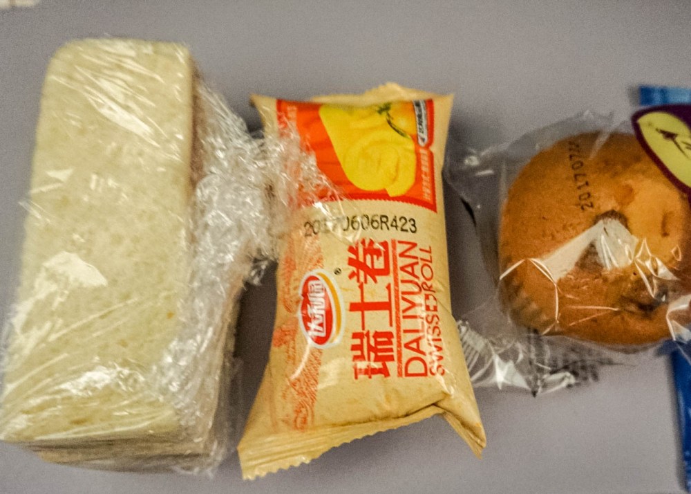 Пассажирам предлагается сбалансированный рацион из свежих и полезных продуктов, включая деликатесы китайской и иных кухонь мира. На завтрак — горячая овсяная каша. Обеденное у вечернее меню состоит из нескольких блюд на выбор: рис, лапша, морепродукты. Питание на коротких рейсах включает пирог, сэндвич или гамбургер. По желанию, можно дополнить трапезу фруктами или йогуртом.