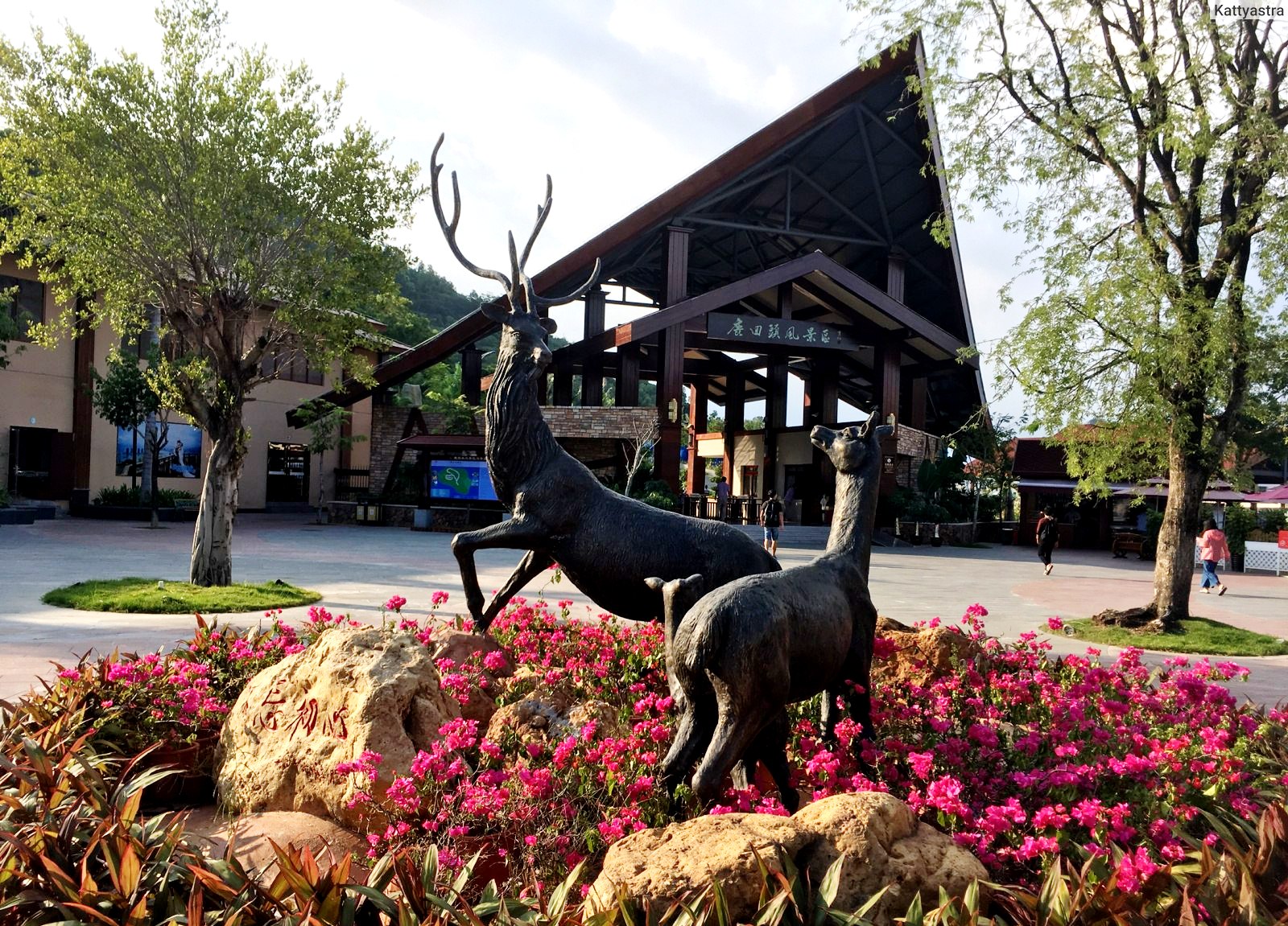 В переводе с китайского языка название полуострова и горы, на которой расположен парк, означает «обернувшийся олень». Именно поэтому так необычно называется живописный парк, находящийся на горе Лухэйтоу высотой чуть больше 275-ти метров. Действительно, если присмотреться к карте, то горная гряда чем то похожа на оленя, остановившегося перед морем.
