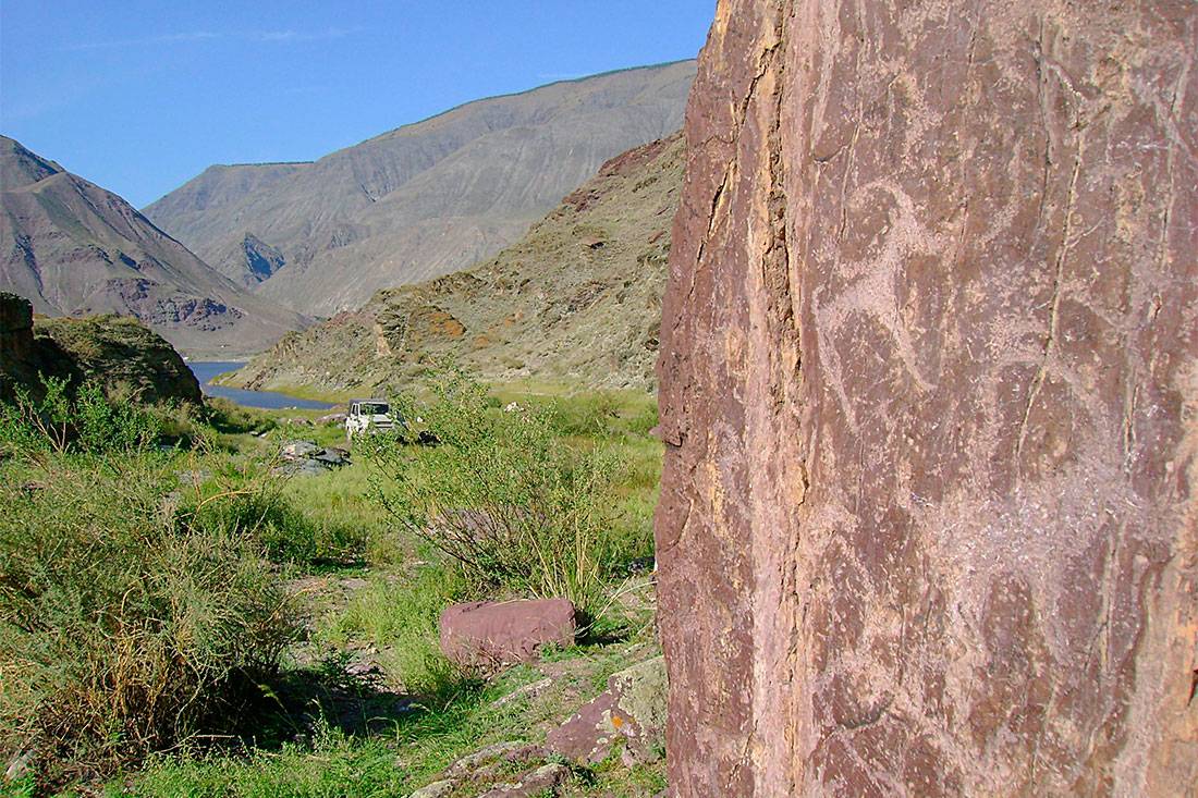 В урочище Мугур-Саргол, расположенном в центральной части Тывы, находится один из древнейших археологических памятников республики. Еще в бронзовом веке местные жители начали наносить на скалы петроглифы – изображения с разными сюжетами. Всего на этом участке более двухсот рисунков, значительная часть из них изображает личины-маски, также есть колесницы, животные и другие сюжеты.