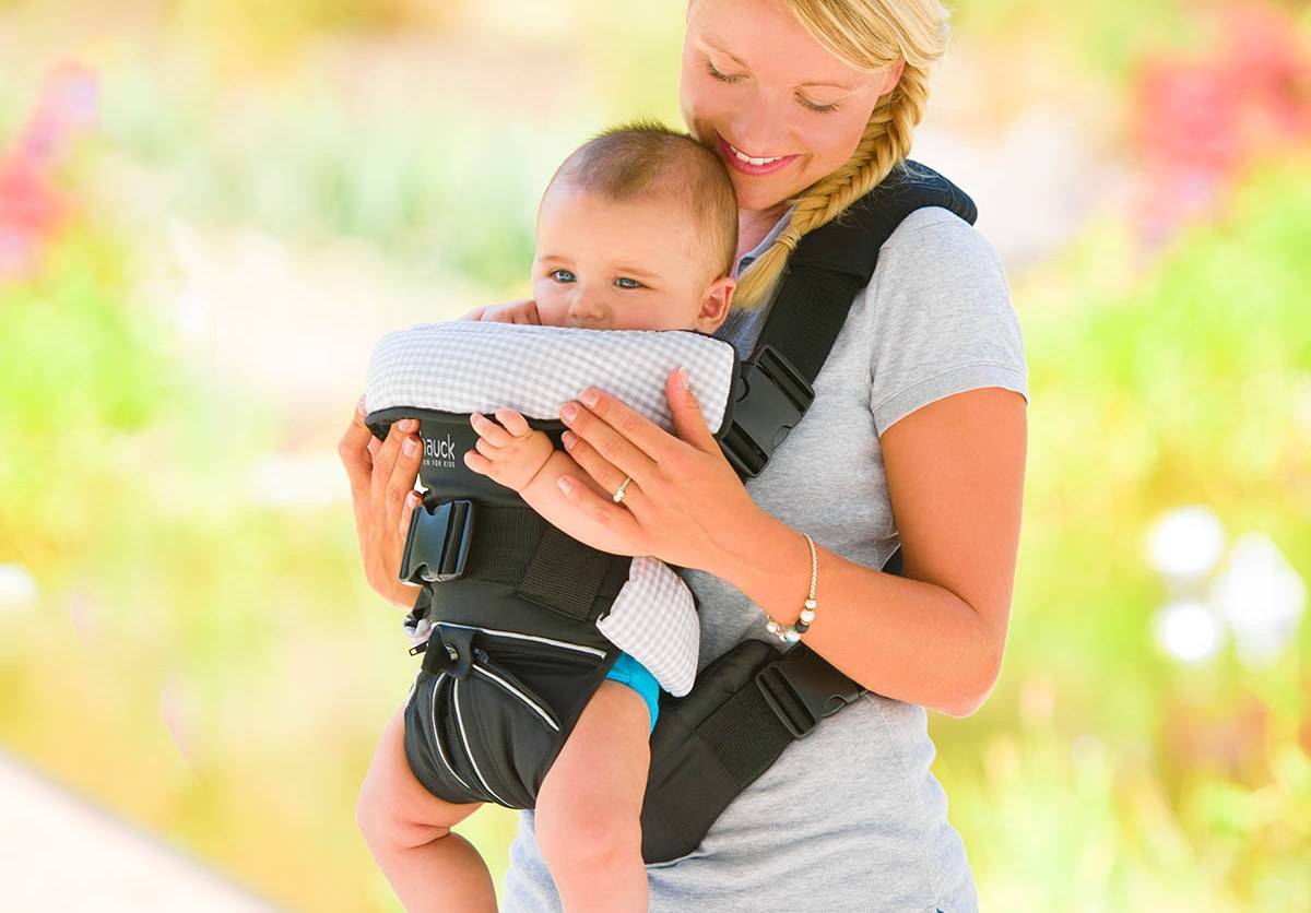 - При перевозке чада на руках обязательно его пристегивание с помощью отдельного ремня.