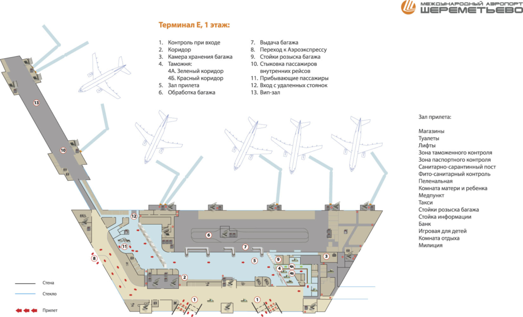 - Зоны прилета и вылета находятся в одном здании, но на разных этажах.