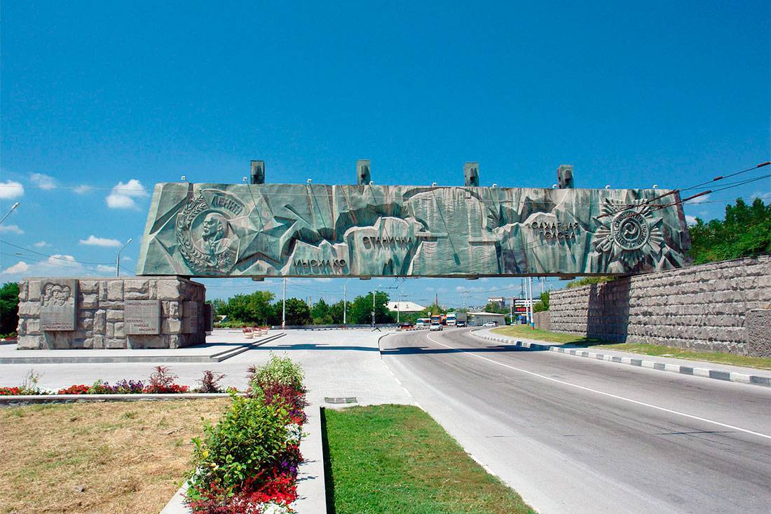 Невероятно выразительный мемориальный комплекс был торжественно открыт в 1978 г. к 35-й годовщине освобождения города от фашистов. Именно в этом месте проходила линия обороны советских войск, преградивших путь армадам вермахта, рвавшимся к нефти Баку и Грозного. В монументальный ансамбля входит подиум с памятными стелами, остов железнодорожного вагона, изрешеченного пулями, осколками снарядов, а также памятник, возвышающийся над автодорогой. Он представляет собой железобетонный пилон, из которого словно вырастают руки солдат, сжимающие автоматы. Выглядит мемориал торжественно и внушительно.