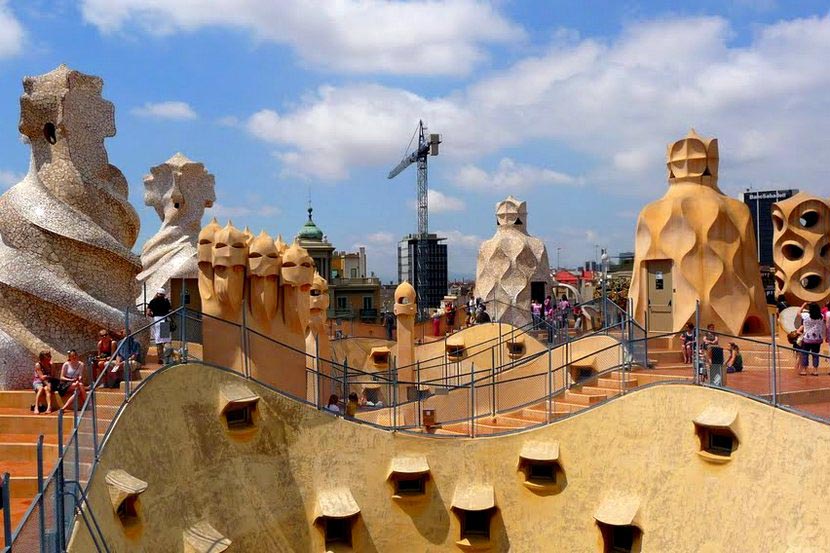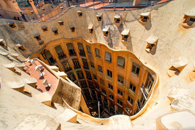 Фасад Дома Мила, а также 3 его внутренних дворика, являются самыми эксцентричными достопримечательностями Барселоны. Внешне Дом Мила (Ла Педрера) смотрится очень примитивно, но на самом деле это архитектурное совершенство, воплощённое в стали и бетоне. Отделка балконов особенно впечатляет. Она была доверена мастеру импровизации Жузеп Марии Пужолю (Josep Maria Pujol de Barberà). Каждая балконная решётка создавалась по эскизам в соотношении 1:1. Когда они были переданы сталелитейщикам, Пужоль сказал, что металл нужно вытягивать так, словно рисуешь им в воздухе.