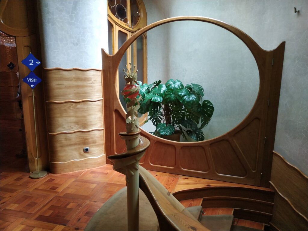 Терраса на крыше — отдельный маленький шедевр Гауди, а мансарда удивительна и имеет более полное выставочное пространство. Квартира в доме Мила, имеет уникальную планировку, продуманную Гауди. Можно посетитьвсе комнаты и посмотреть оригинальные интерьеры и дизайнерскую мебель. Если вы хоть немного интересуетесь архитектурой, вам стоит выбрать именно дом Мила.