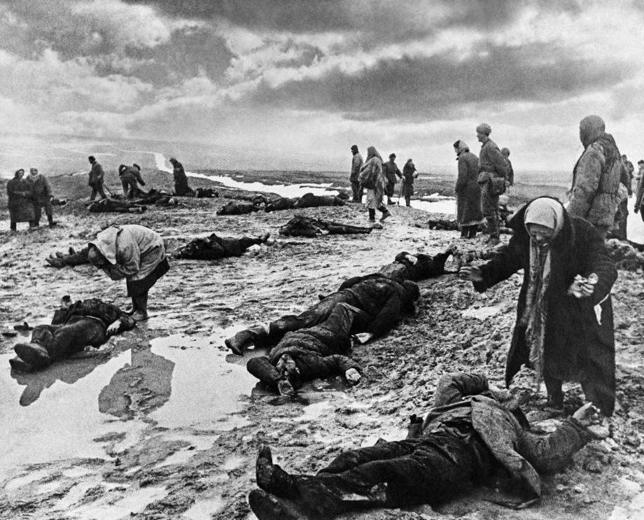 Фото «Горе» – снимок времен Великой Отечественной войны в январе 1942 г. На снимке изображено место расстрела немецкими оккупантами мирных жителей. Автор Дмитрий Бальтерманц. Место снимка г.Керчь.