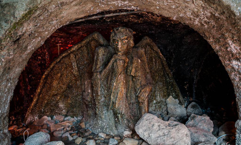 Еще одной достопримечательностью Курортного парка является статуя Демона из одноименного произведения Михаила Юрьевича Лермонтова. Печальный и задумчивый Демон, сидящий в гроте за решеткой, расположен прямо под памятником поэту. Статую разместили в 1960 году, но прежде решетки перед ним не было. Однако регулярные акты вандализма вынудили поставить перед гротом решетку – что придало скульптуре еще большую живость. Особый эффект Демону придают красные глаза, светящиеся в темноте. Судя по отзывам туристов, скульптура мистическая и очень эффектная, ее обязательно нужно увидеть.