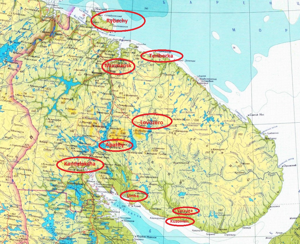 - ПГТ Мурмаши с населением 13700 жителей, в нем располагается аэропорт Мурманск.