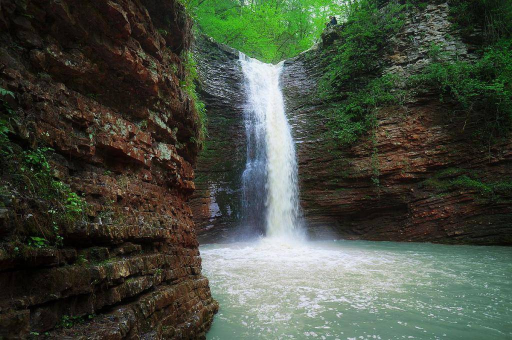 Одна из наиболее знаменитых достопримечательностей Адыгеи. Этот поистине шедевр природы располагается в ущелье реки Руфабго. Недалеко от этого места, как уже говорилось выше, располагается поселок Каменномостский. Именно отсюда начинается большая часть туристических маршрутов. Поэтому побывавшие здесь путешественники советуют в своих отзывах: если вы решите отправиться к водопадам, стоит это сделать именно из этого населенного пункта.