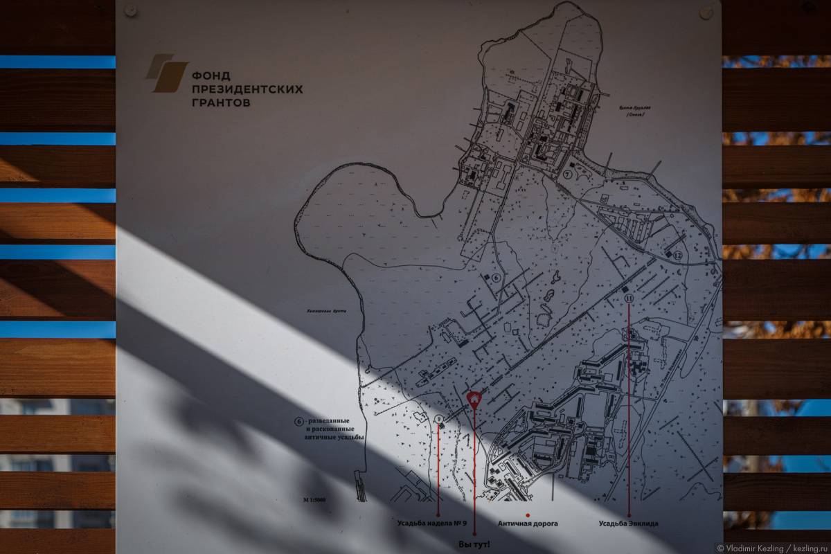 Усадьба № 9 была построена в IV веке до нашей эры и просуществовала на этом месте тысячу лет (вдумайтесь только, тысячу!) — до VI века нашей эры. Она представляла из себя типичный древнегреческий ойкос — домашнее хозяйство, полностью обеспечивавшее себя продукцией и имевшее замкнутый оборот. Как раз древнегреческие ойкосы позже стали прародителями всем известных римских вилл.