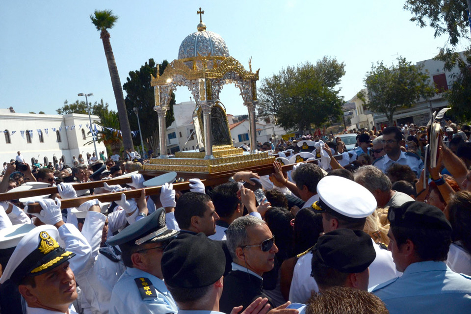 - День Успения. Отмечаемый 15 августа, День Успения является главным религиозным праздником в Греции. Это время религиозных обрядов, но также и день семейных встреч и пиршеств;