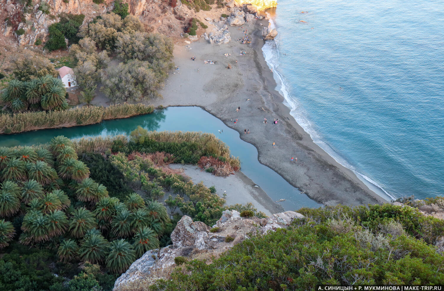Пальмовый пляж Превели — удивительное место. Пресная река, которая течет по живописному ущелью, впадает в море, а вдоль нее растет пальмовая роща. Я очень хотела попасть на пляж, но из-за поломки машины мы приехали к закату и посмотрели на него только со смотровой площадки.
