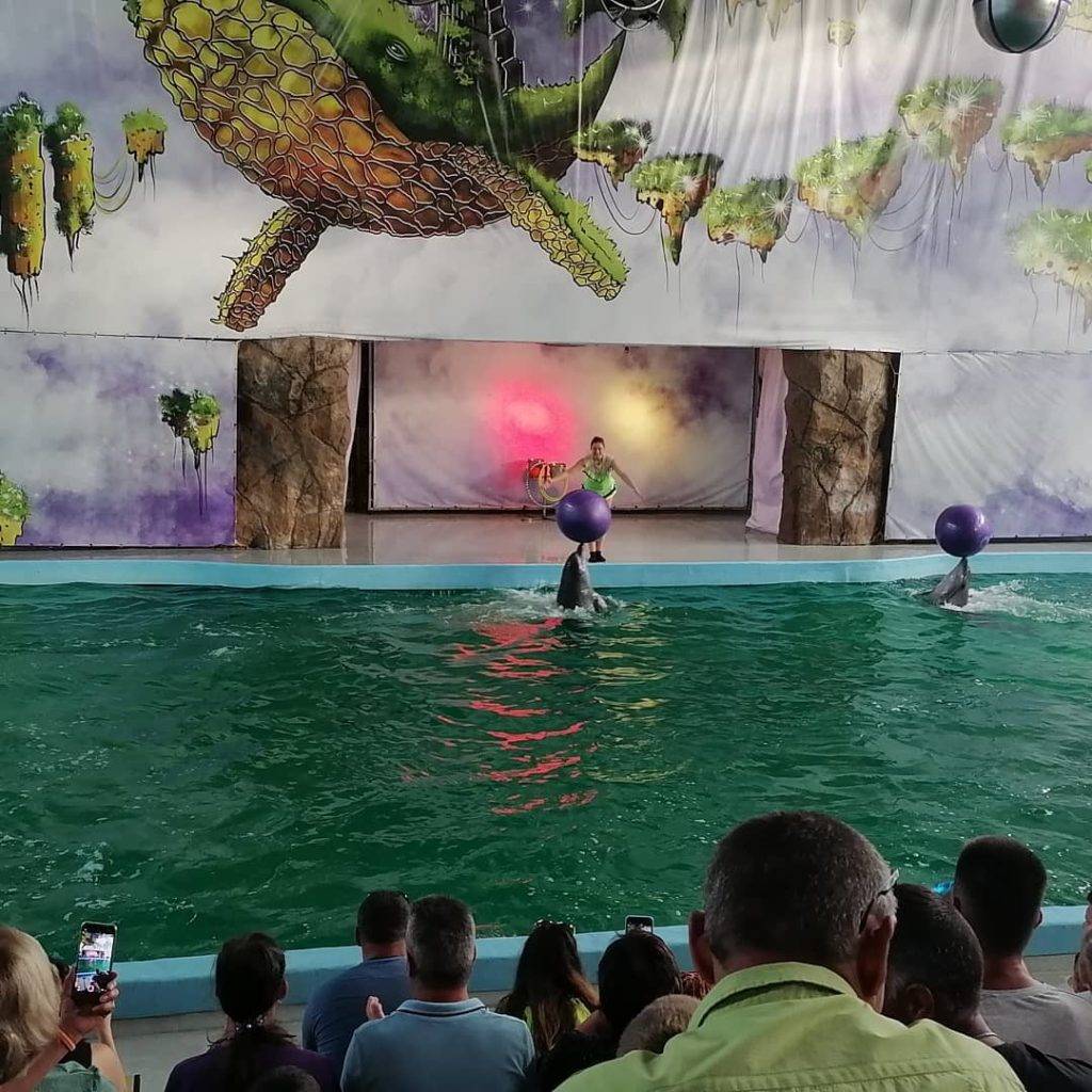 - Дельфинарий крытый, поэтому шоу проходит в любую погоду