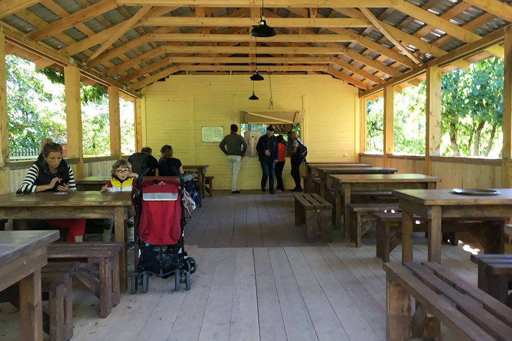 Кафе «У певческого поля» находится прямо рядом с Центральной усадьбой. Комплексный обед с супом, салатом из капусты, картофелем и курицей или чем-то постным здесь предлагают за 350 Р.