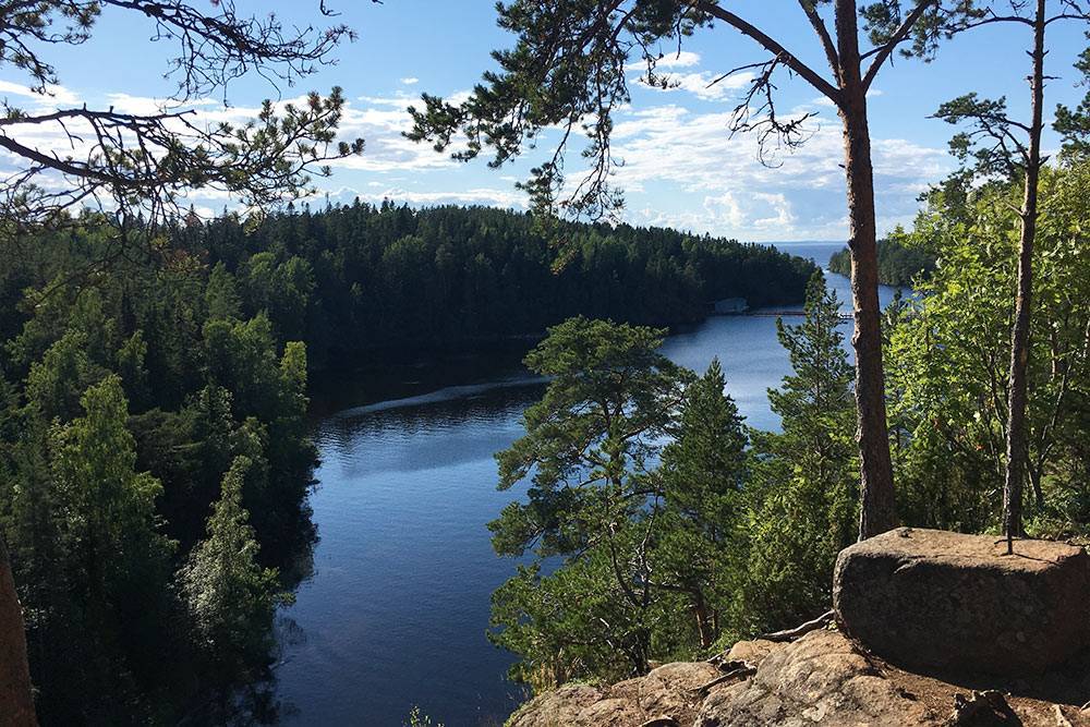 Прогулка по острову запомнилась мне живописной дорогой: мы ехали то через дремучие еловые леса, то через столетнюю дубовую аллею, высаженную монахами. Рядом с аллеей у дороги стоит «сосна Шишкина» — знаменитый художник был там несколько раз и написал множество пейзажей. На одной из скал по пути высечен памятный знак «Сделана сия дорога в 1845 году».