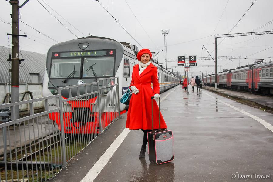 Мы выбрали скоростной экспресс, у которого меньше остановок, есть вай-фай и туалеты. Время в пути до Калуги около 2,5 часов. Билеты лучше покупать заранее, так они будут дешевле.