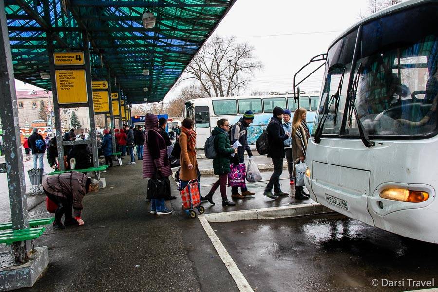 Автобусы до Калуги отходят с автостанции «Теплый Стан» (Новоясеневский пр-т, 4, стр. 9). Транспорт курсирует с 7:00 до 21:00 с интервалом 15-30 минут. Время в дороге — 3-4 часа, стоимость поездки — 500 рублей. Конечная остановка — автовокзал, расположенный в одном здании с железнодорожной станцией «Калуга-1». Платформы автовокзала расположены рядом.