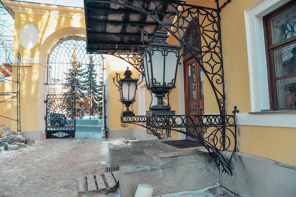 Крыльцо краеведческого музея — отдельная достопримечательность. Во дворе усадьбы до сих пор сохранилось дорожное покрытие из булыжника