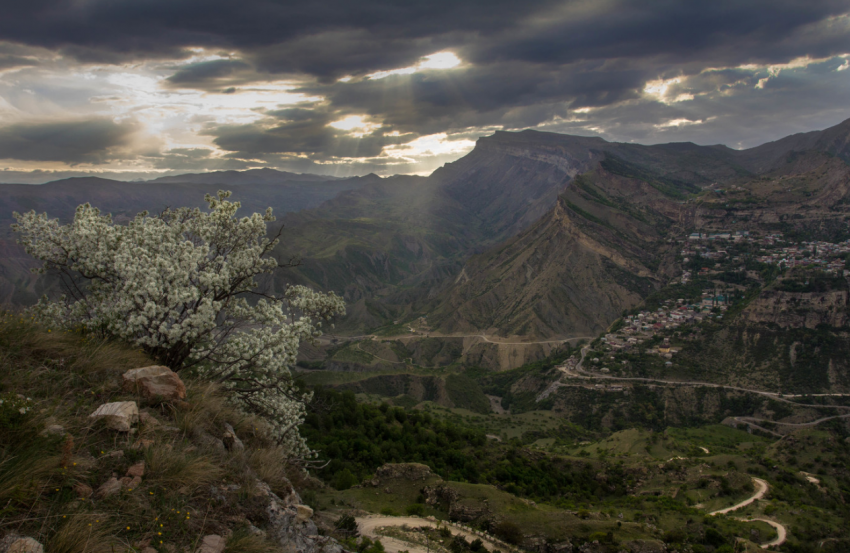 Дагестан весной «цветущей» приметен такими температурами. Горные районы – от 8 до 16 градусов тепла. Наиболее высокогорные – от 5 до 10. Дожди продолжаются (облака «в плену»).