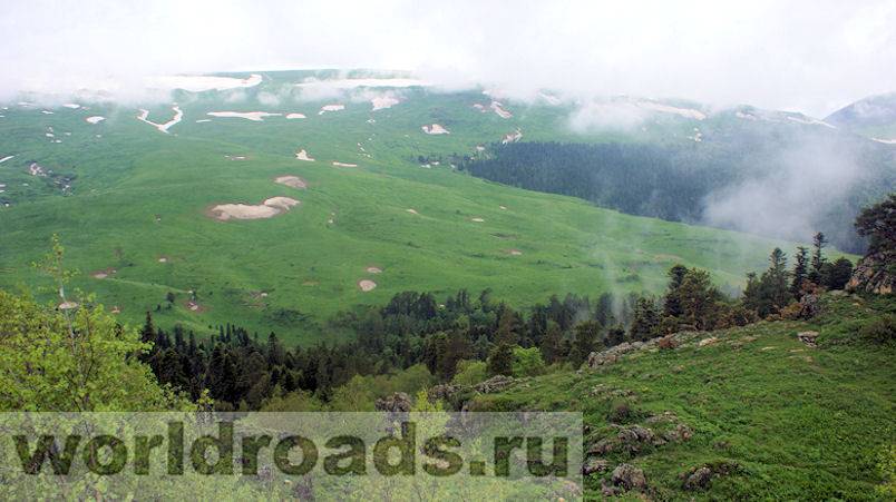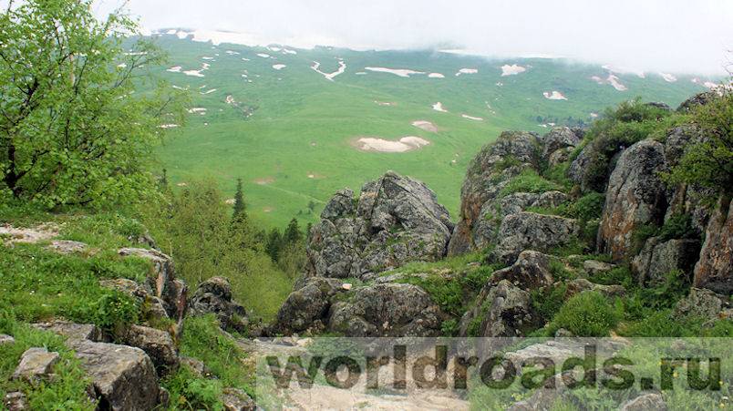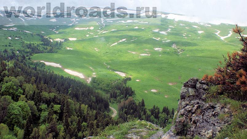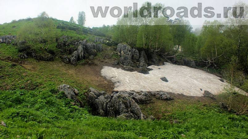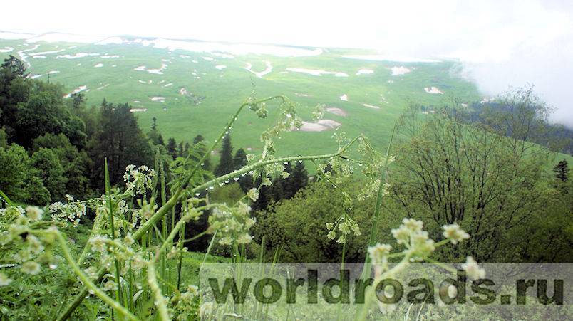 Природа Адыгеи в июне очень разнообразна. Тут – цветы, зелёная трава, а – тут снег. Иногда снег и цветы соседствуют. Красотища! Этот текст украден с сайта Дороги мира (worldroads.ru)!