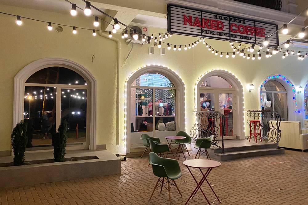 Naked Сoffee. Классно посидеть за столиком на улице и полюбоваться соснами и набережной