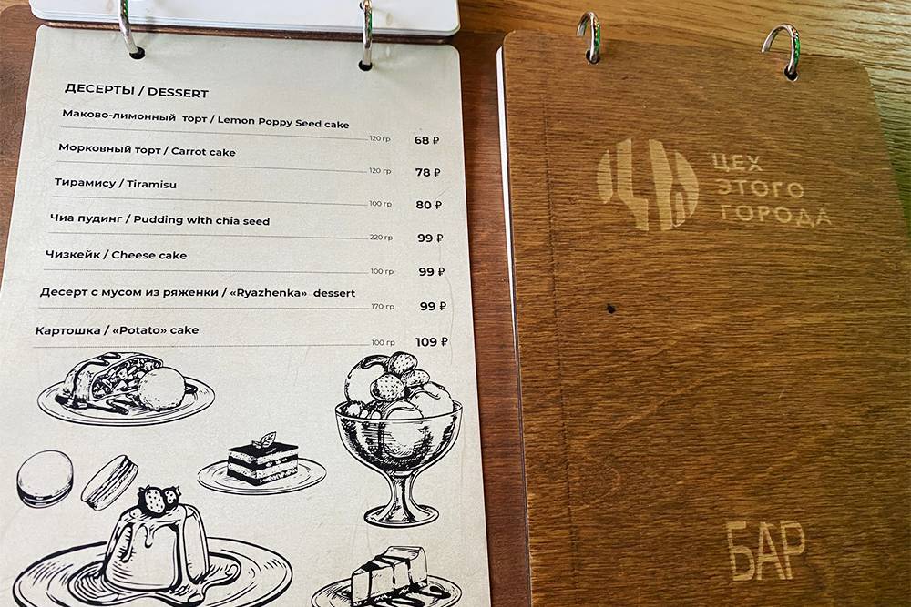 Мое недавнее открытие — ресторан «Цех этого города». При входе платишь от 100 до 350 Р с человека в зависимости от времени дня, и за тобой на 2 часа закрепляют столик. Еда и напитки идут по себестоимости. Так, за говяжьи медальоны с картофельным кремом и грибным соусом нужно будет заплатить 418 Р, за куриное филе на гриле — 197 Р, утиная ножка с яблочным пюре обойдется в 315 Р, овощи на гриле — в 89 Р.