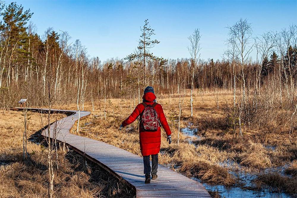 Зимой болото промерзает, можно сойти с тропы и углубиться в него. Летом покидать тропу опасно: есть риск провалиться в трясину и замочить ноги
