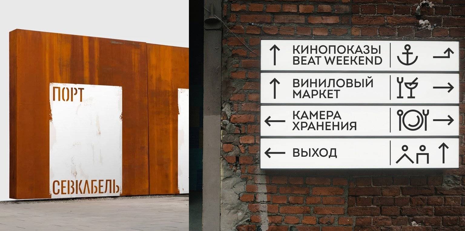 Дизайн городского арт-пространства на территории старого завода. Айдентика очень простая и многофункциональная, грубый шрифт и картинки сочетаются с эстетикой завода, и продуманы указатели, важные для любой территории