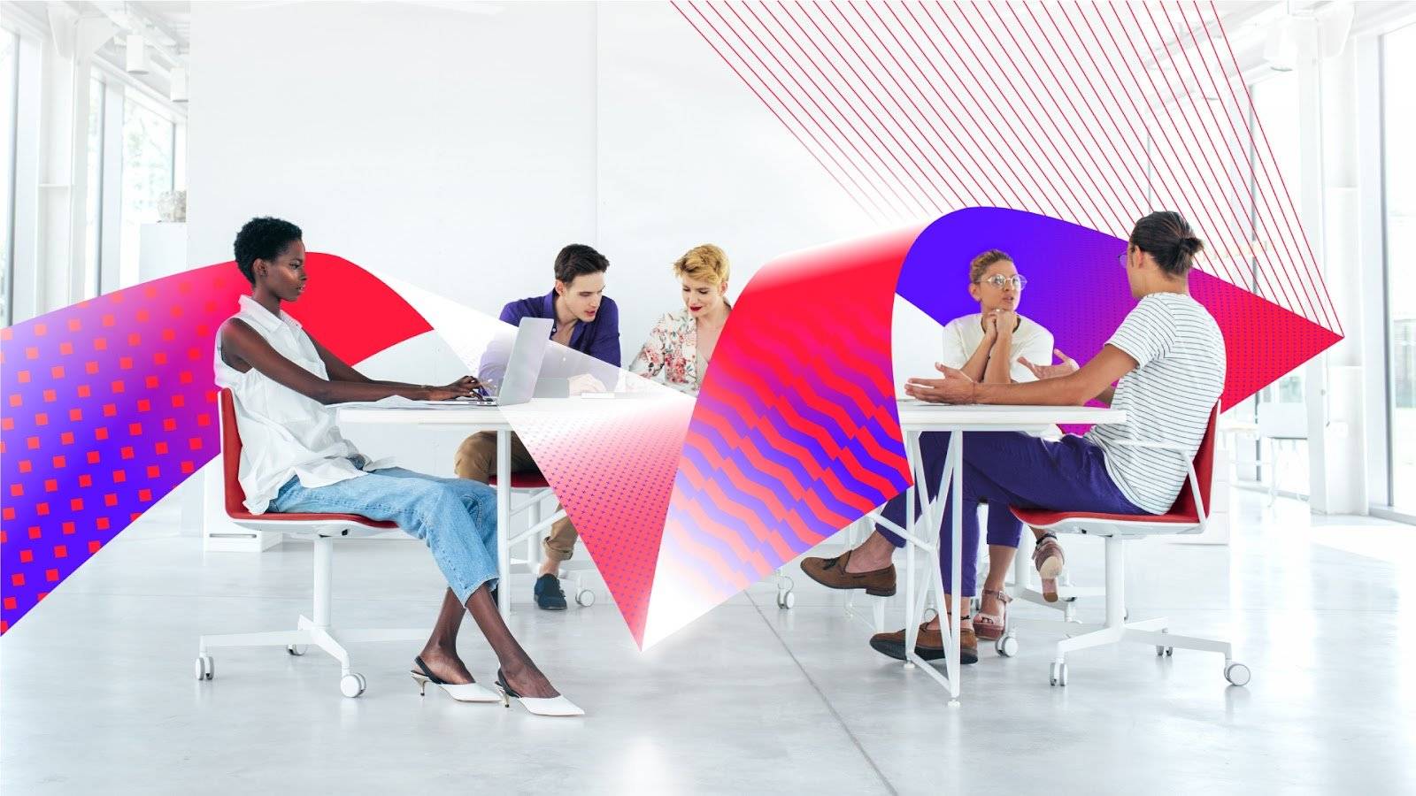 Символом трансформации стала вихреобразная лента, которая раскрывается слева направо, меняет фактуру с монохромного цвета к яркому градиенту с геометрическим узором. Она ― основа новых брендовых кейвижуалов. При этом логотип ― красные буквы ABBYY ― компания радикально менять не стала.