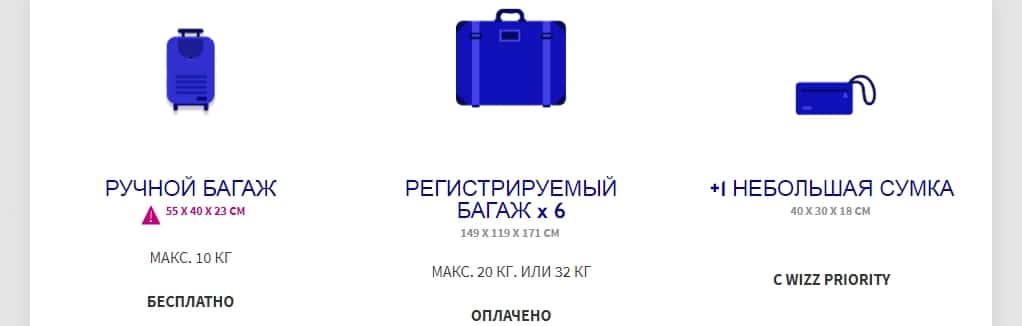 - У лоукостеров своя политика в отношении багажа: собрать все необходимые вещи вам придётся в ручную кладь. В салон обычно разрешают брать багаж габаритами до 55 × 40 × 20 см и весом до 8 кг (данную информацию необходимо уточнять, так как у каждой компании могут быть свои ограничения). Если вы чувствуете, что габариты вашего багажа больше, то лучше заранее на сайте оплатить перевозку дополнительного багажа.