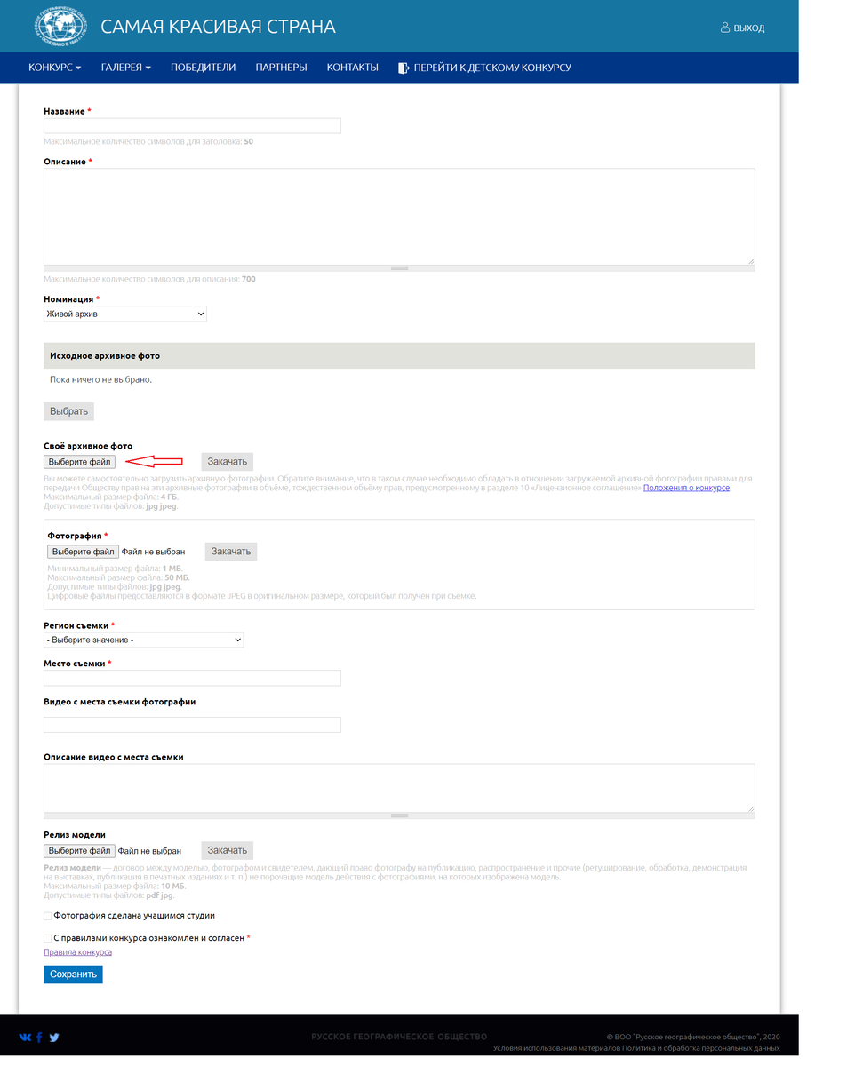 Некоторые номинации имеют свои особенности при загрузки на сайт, это номинация “Живой архив”.