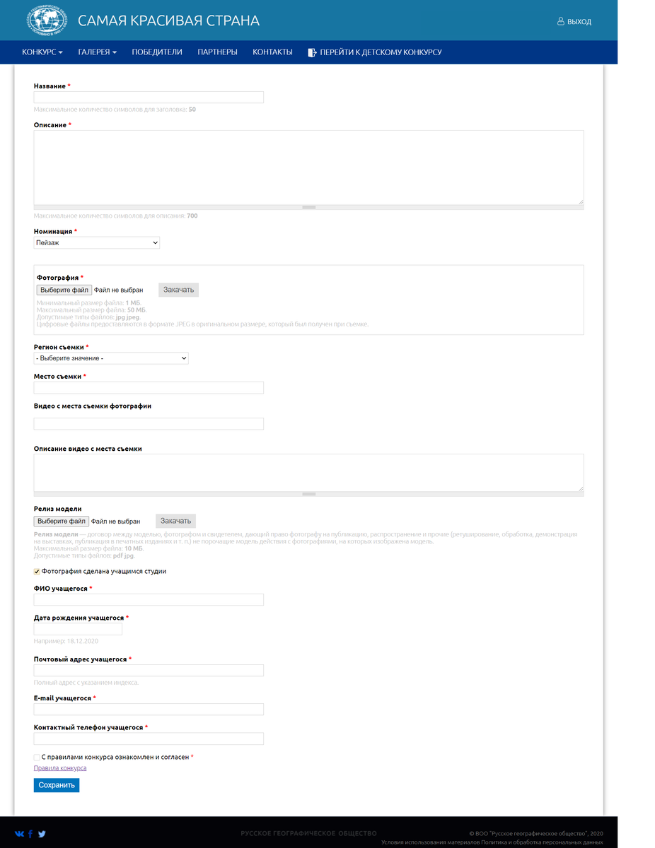 7. Если вы руководитель фотостудии и добавляете работы учащихся вам необходимо указать это и заполнить все поля, помеченные красной звездочкой.