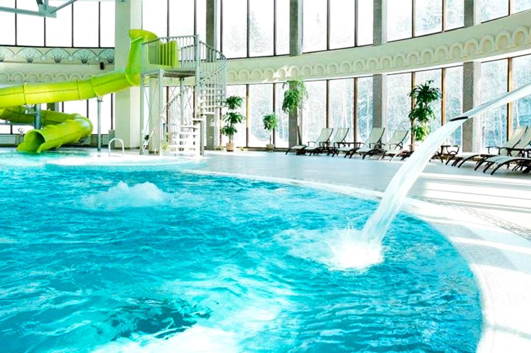 Бассейн и СПА услуги: открытый и крытый бассейны с подогревом для детей и взрослых, купальня под открытым небом, разнообразный массаж, парная, спа-процедуры, обертывание, пилинг для тела, уход за телом, лицом и волосами, восковая эпиляция, косметические услуги, турецкая баня, гидромассажная ванна, солярий, зал для занятий фитнесом, сауна.