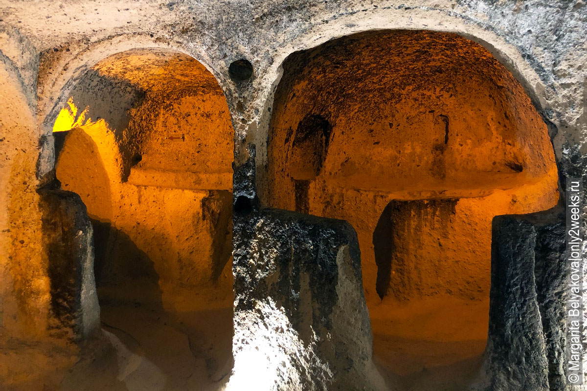 Рекомендация: мы гуляли по территории городов самостоятельно, но лучше осматривать территорию подземных городов с гидом, поскольку при самостоятельном осмотре на многие моменты не обращаешь внимание, а про назначение некоторых помещений приходится только догадываться. Что взять: возьмите с собой толстовку, под землей прохладно, а также идите налегке, крупные сумки и рюкзаки лучше оставить снаружи