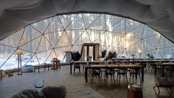 Здесь находятся отель, заведения, где можно вкусно подкрепиться, колесо обозрения, с которого можно наблюдать шикарные виды — знаменитую Белую Скалу и водохранилище Тайган.