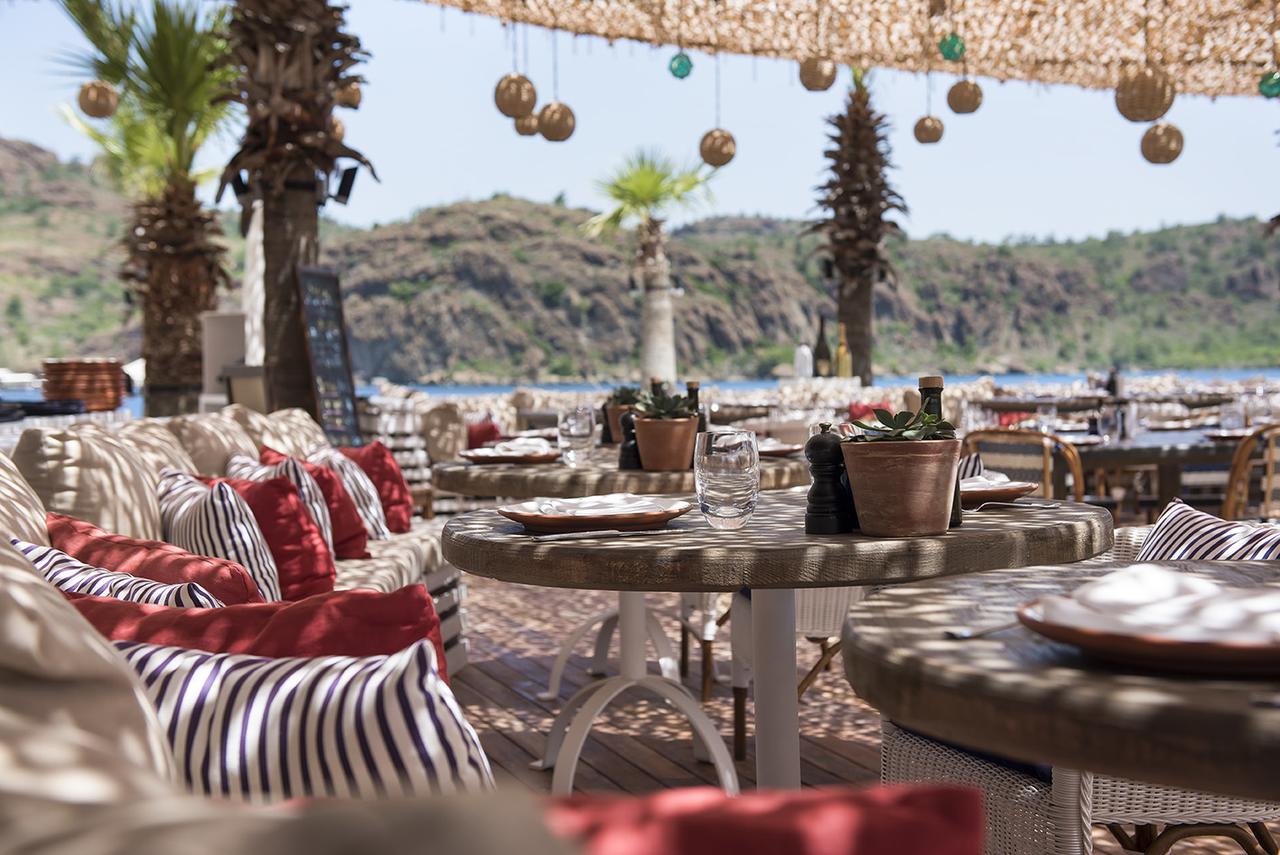 В распоряжении гостей целых четыре живописных пляжа с прозрачной лазурной водой, а еще целых два моря — Средиземное и Эгейское. Пляж Bay Beach отлично подойдет для семейного отдыха, здесь же вас ждут водные развлечения и два ресторана с авторской кухней и видом на море. Пляж La Guérite находится на окраине бухты, а местный ресторан удивит блюдами средиземноморской кухни. На пляже Manos расположен одноименный ресторан греческой кухни, где особенно романтичным станет ужин на закате с видом на море. Название пляжа Silence Beach само говорит о том, что здесь вас ждет спокойный релакс отдых. Также гостям, которые разместились в частных бунгало, доступен отдельный пляж.