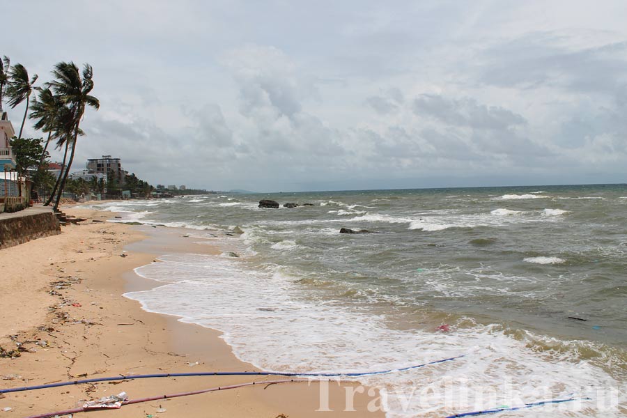 До этого пляжа ехать примерно 36 км. от города Зуонг Донга на северо-восток острова, хоть тут и есть кафе, но сам пляж показался пустынным. Кстати от сюда тоже прекрасно виден камбоджийский берег.