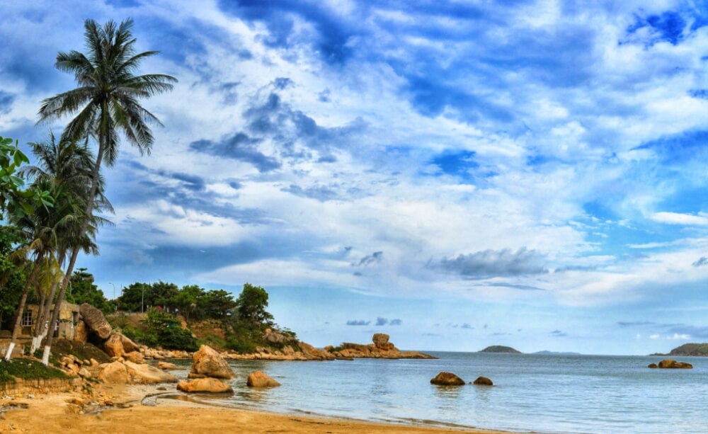 Пляж Нху Тьен находится рядом с живописной бухтой Даймонд-Бей и имеет огромную территорию с красивым белым песком, пальмами, голубой водой и зелеными горами.