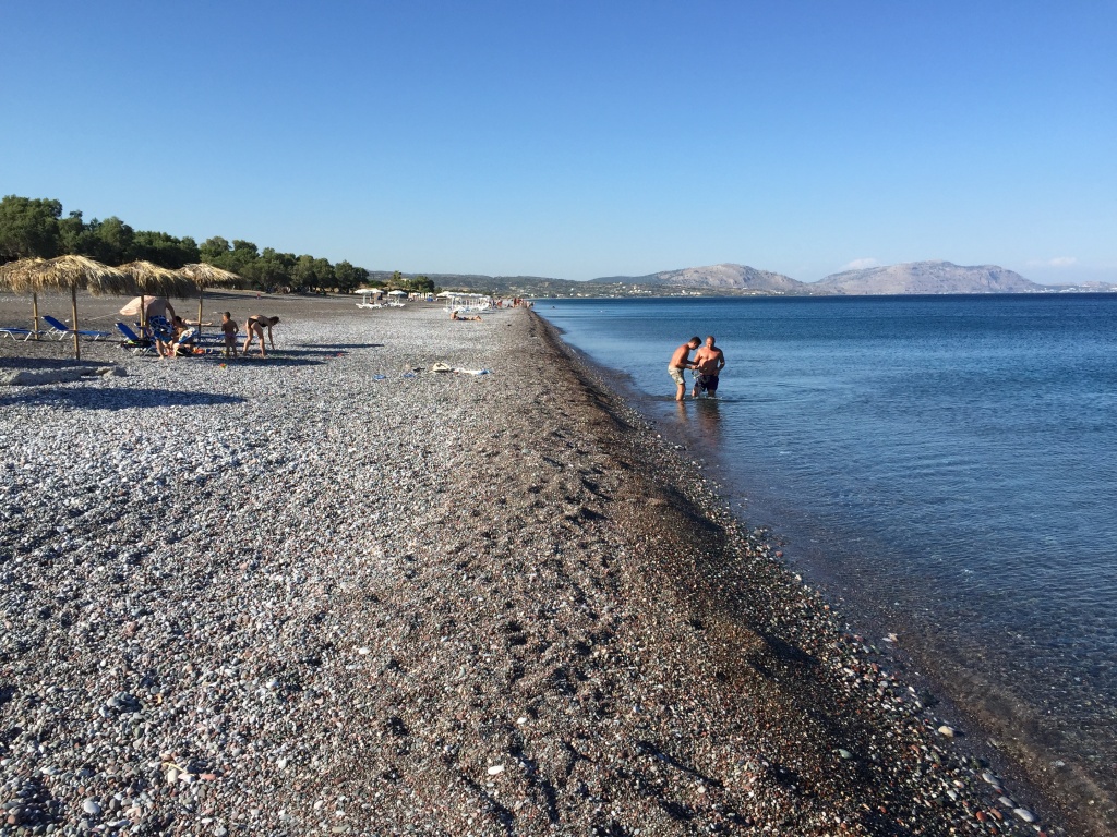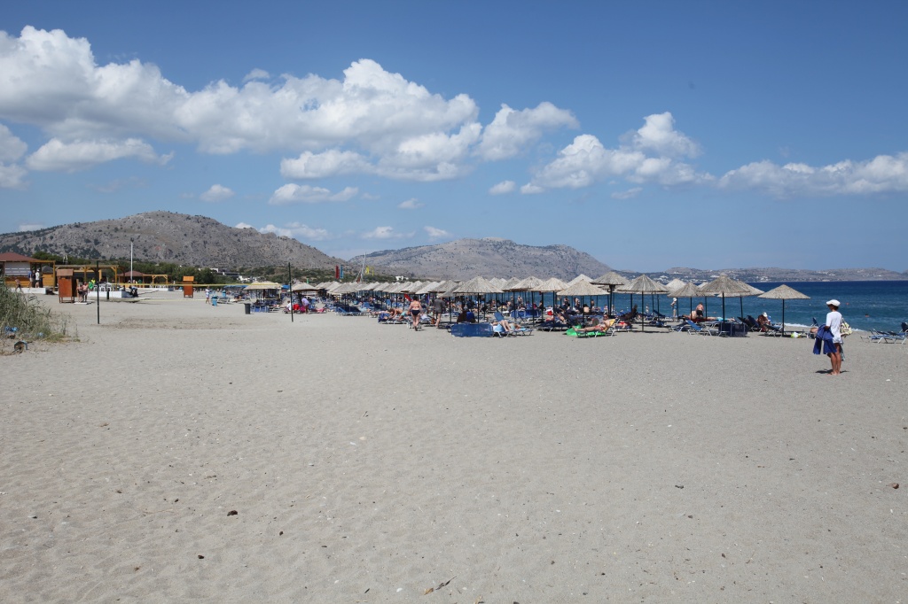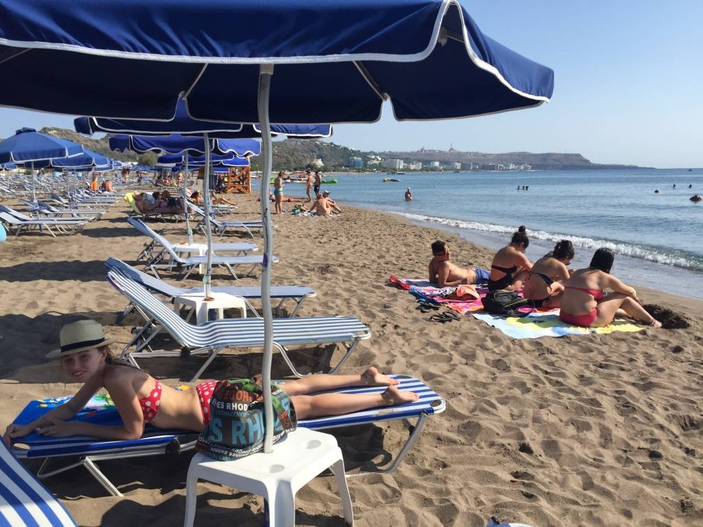 В этой группе я хочу описать пляжи, которые находятся по обеим сторонам острова Родос и предназначены в основном для проживающих в отелях, расположенных вблизи этих пляжей. Вся отельная база острова, за исключением пляжа Фалираки, построена на песчано-галечных пляжах. То есть сам пляж может состоять из песка, а вход в море будет из гальки или даже крупной гальки. Некоторые дорогие отели пытаются постоянно чистить свои участки от крупных камней. Поэтому для купания на таких пляжах может потребоваться специальная обувь, которая продается во всех близлежащих супермаркетах. Все пляжи имеют необходимую туристическую инфраструктуру и оборудованы лежаками, но практически в любом месте можно расположиться со своим зонтиком и полотенцем.