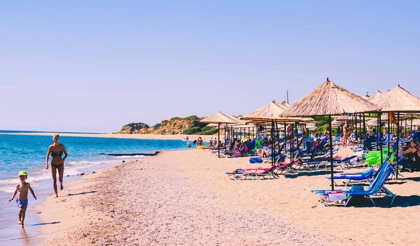 Пляж Хараки – состоит из галечной и песчаной частей и предназначен для проживающих в недорогих отелях и апартаментах поселка Хараки.