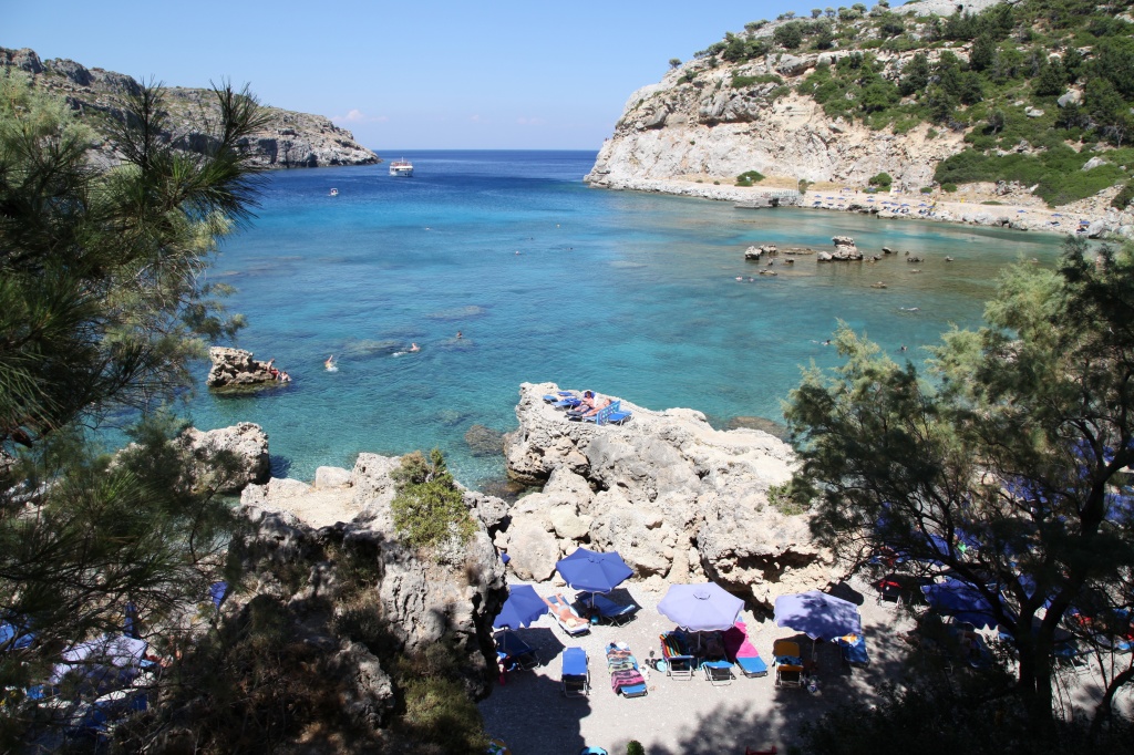 В эту категорию я хочу отнести маленькие пляжики острова, расположенные в уединенных и довольно симпатичных бухточках, находящихся на восточной стороне острова Родос, омываемой водами Средиземного моря. Территории у них ограничены обычно скалами, поросшими зеленой растительностью, вход в море крупный песок или мелкая галька, за счет чего вода остается прозрачной, а на дне расположены огромные камни, что создает дополнительный интерес для любителей поплавать с маской и понаблюдать за животным и растительным подводным миром.